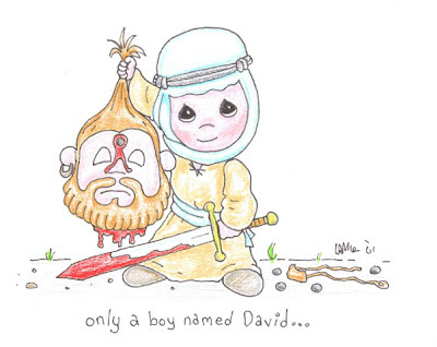 Desenhos "fofos" mostrando personagens da Bíblia, que se tornaram famosos..