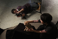 Este filhote de cachorro não tem dono e não terá um. Depois que a sessão de fotos terminar ele será levado por veterinários para ser sacrificado.